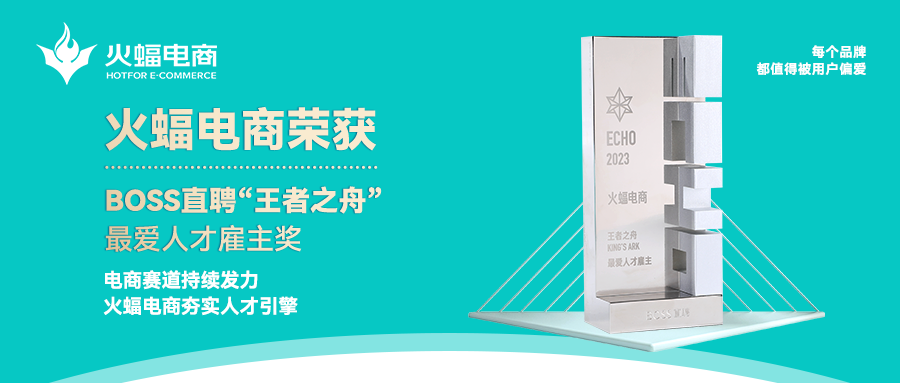 近日,火蝠電商從眾多企業評選中脫穎而出,榮獲BOSS直聘頒發的“王者之舟”最愛人才雇主獎。此次入選,不僅是對火蝠在培養人才方面成果的肯定,更是對火蝠優質人力資源管理戰略的勉勵。